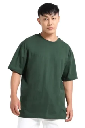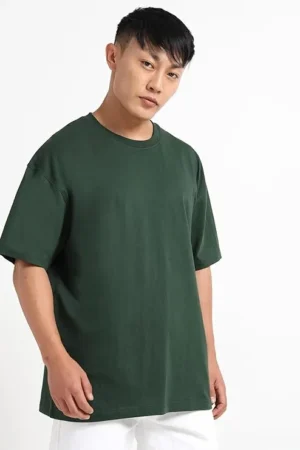 Men’s Round Neck Premium Cotton (Bottle Green) Oversized Drop Shoulder T-shirt, BYOV000015