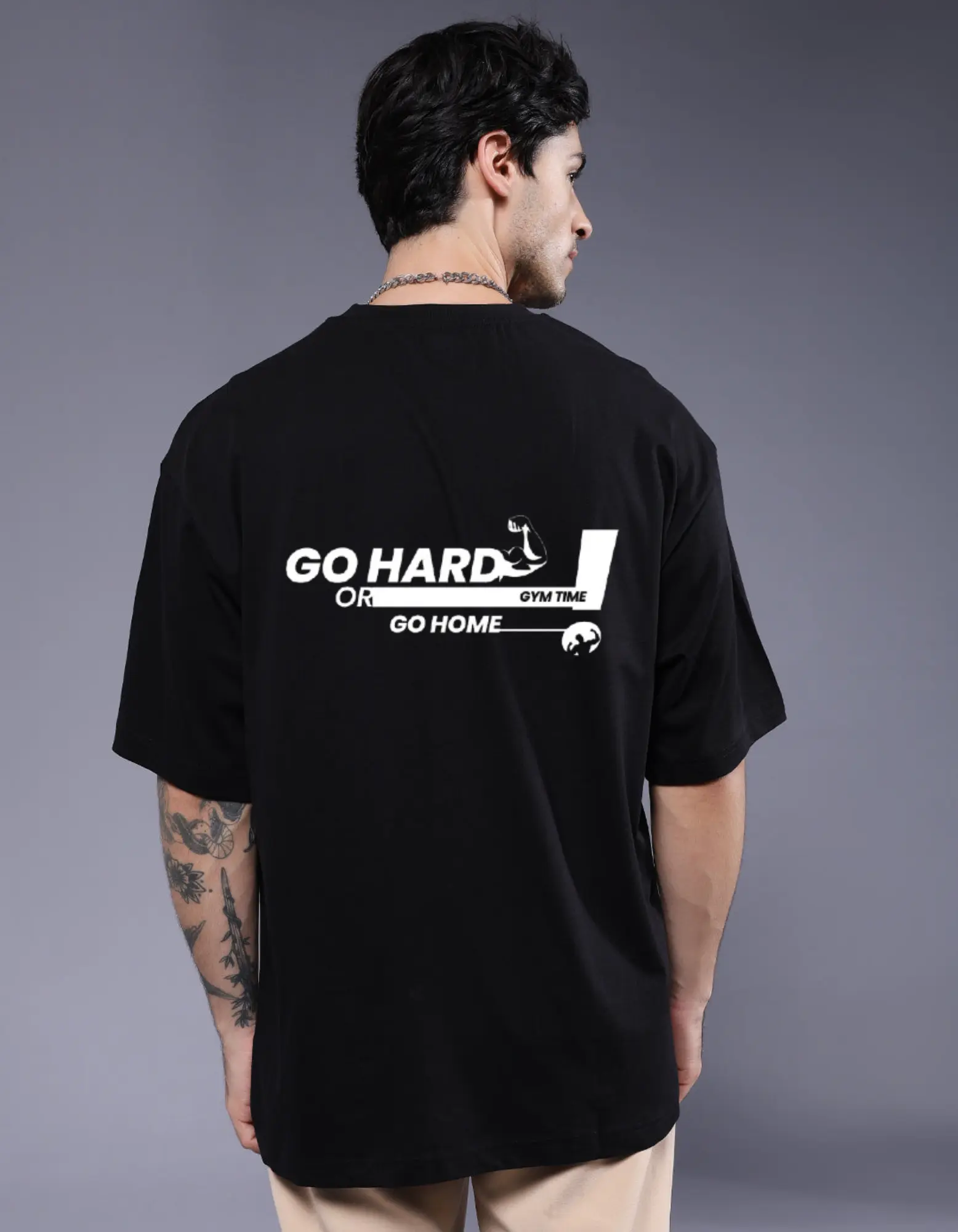 Bold Back Graphic: Features a premium white printed design with “Go Hard or Go Home” typography and fitness-inspired iconography.