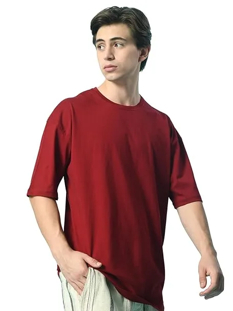 This oversized t-shirt is crafted from soft, breathable cotton for all-day comfort. The deep maroon color adds a bold yet versatile touch, making it easy to style with jeans, joggers, or layered under jackets. Designed with dropped shoulders and a loose fit, it offers a laid-back streetwear vibe while keeping you effortlessly comfortable.