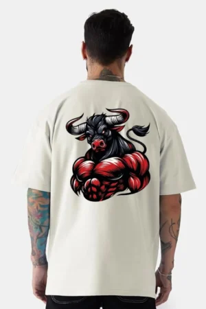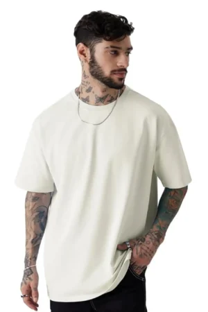 Men’s Round Neck Premium Cotton (White) Printed Oversized Drop Shoulder T-shirt, BYOV000018