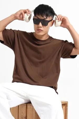 Men’s Round Neck Premium Cotton (Brown) Oversized Drop Shoulder T-shirt, BYOV000014