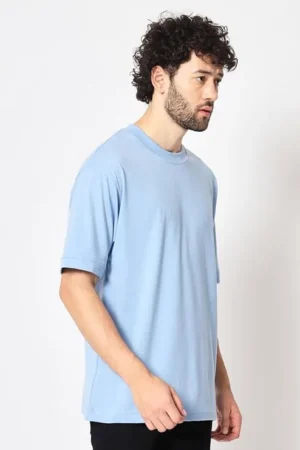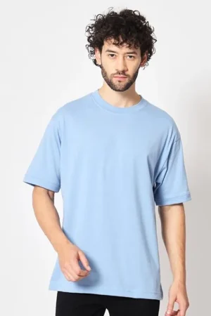 Men’s Round Neck Premium Cotton (Sky Blue) Oversized Drop Shoulder T-shirt, BYOV000016